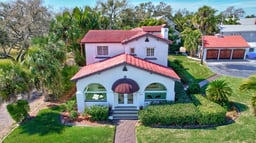 This stately Mediterranean-style home was built in 1920 in the Historic Park Street neighborhood, adjacent to the beautiful Sunset Park. Today it still provides the perfect setting for family, entertaining and relaxing, only a short walk to Boca Ciega Bay; the Gulf Beaches are just over a mile away. All the original architectural details are preserved along with the original hardwood floors throughout. The large rooms offer elegance, comfort, flexibility and privacy. There are two welcoming entries, the front opens into an enclosed porch ideal for greeting guests or the new day; the side entry from the parking area opens into an elegant foyer. Both entries lead to a spacious area comprising both the living room and a large dining area. The updated kitchen includes stainless appliances, custom cabinetry and granite countertops, with an adjoining breakfast room overlooking the pool area. A large bedroom with a sitting area and a full bath complete the lower level. Upstairs are two large bedrooms, a smaller bedroom, two full baths, one half bath and a spacious sunroom with original Cuban tile flooring. A new 10-zone HVAC system allows total environmental control in each room, including the enclosed porch, throughout both floors. The home is situated on a large 18,000 sq ft lot with a backyard pool and gazebo, a separate three car garage with ample parking and mature landscaping. The home is located near excellent schools including Admiral Farragut Academy, famous Gulf beaches, waterfront parks, shopping, and dining. Downtown St. Petersburg is a short drive; Tampa International Airport is 30-40 minutes.