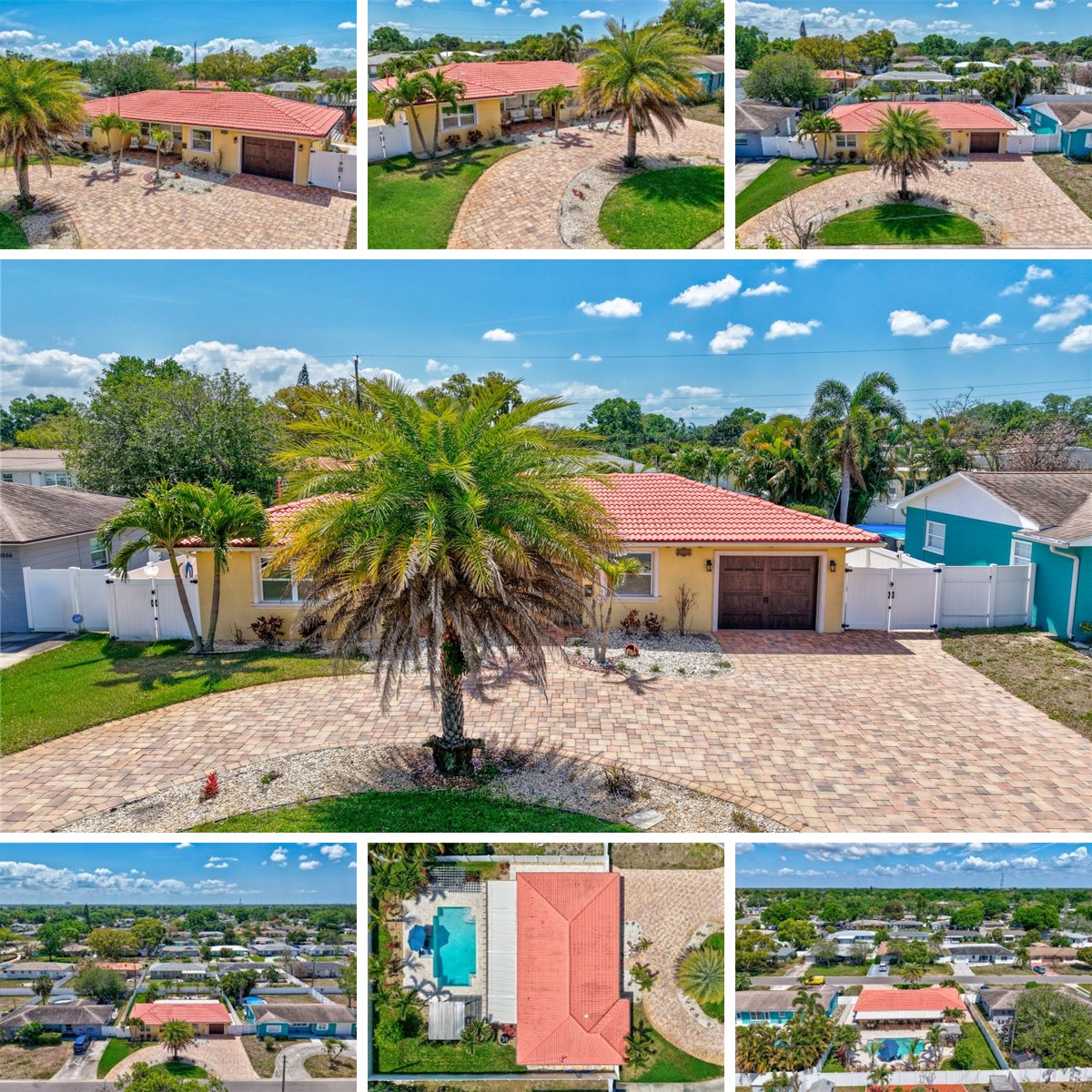 If you love to entertain, this home is about to steal your heart. Welcome to 3890 Benson Drive North in St. Petersburg—a beautifully updated 2-bedroom, 2-bath residence designed for effortless indoor-outdoor living and unforgettable gatherings. From the moment you arrive, you’ll appreciate the stunning semi-circular brick paver driveway, offering exceptional curb appeal and ample parking for guests—setting the tone for the entertainer-friendly experience that awaits. The true showstopper lies beyond the doors—an incredible backyard retreat built for hosting on any scale. Your private outdoor paradise features a sparkling saltwater pool surrounded by elegant travertine decking, creating a resort-style ambiance right at home. Two pergolas anchor each end of the pool, offering shaded lounge spaces perfect for relaxing with guests or enjoying a quiet evening cocktail. The fully equipped outdoor kitchen makes grilling and serving a breeze, while the expansive entertainment area provides plenty of room for dining, lounging, and celebrating. Take your hosting to the next level with a pre-hung outdoor TV, subwoofer, and integrated speaker system—all easily controlled through the HEOS app—so you can set the perfect playlist or game-day atmosphere in seconds. Thoughtful outdoor lighting enhances the mood after sunset, while vinyl fencing ensures privacy for you and your guests. Inside, the home continues to impress with a renovated kitchen featuring custom solid wood cabinetry, granite countertops, stainless steel appliances including a Bosch dishwasher (2022), new microwave (2024), and LG refrigerator, plus bar seating ideal for casual gatherings. Tile flooring runs throughout—no carpet—while the updated bathroom offers marble walls and a travertine walk-in shower for a touch of luxury. Major upgrades provide peace of mind, including a new Daikin high-efficiency 3-ton AC system with HEPA filtration (2024), upgraded 200-amp electrical panel (2024), and a new garage door (2022). Additional features include double-pane insulated windows and sliders, a concrete tile roof, newer ceiling fans, Levolor blinds, outdoor security cameras, and a Ring doorbell, along with a transferable termite bond. This home is located in a non-evacuation zone, requires no flood insurance, and has no HOA—offering both peace of mind and financial savings. Located 2 blocks from the Gladden Park Recreation Center, where you can enjoy indoor pickleball, a gymnasium, dance room, outdoor lighted basketball courts and more! Also located just minutes from the vibrant dining and entertainment scene of downtown St. Petersburg and the beautiful shores of St. Pete Beach, this home offers the perfect balance of lifestyle and location. This isn’t just a home—it’s an entertainer’s dream. Don’t miss your chance to make it yours.