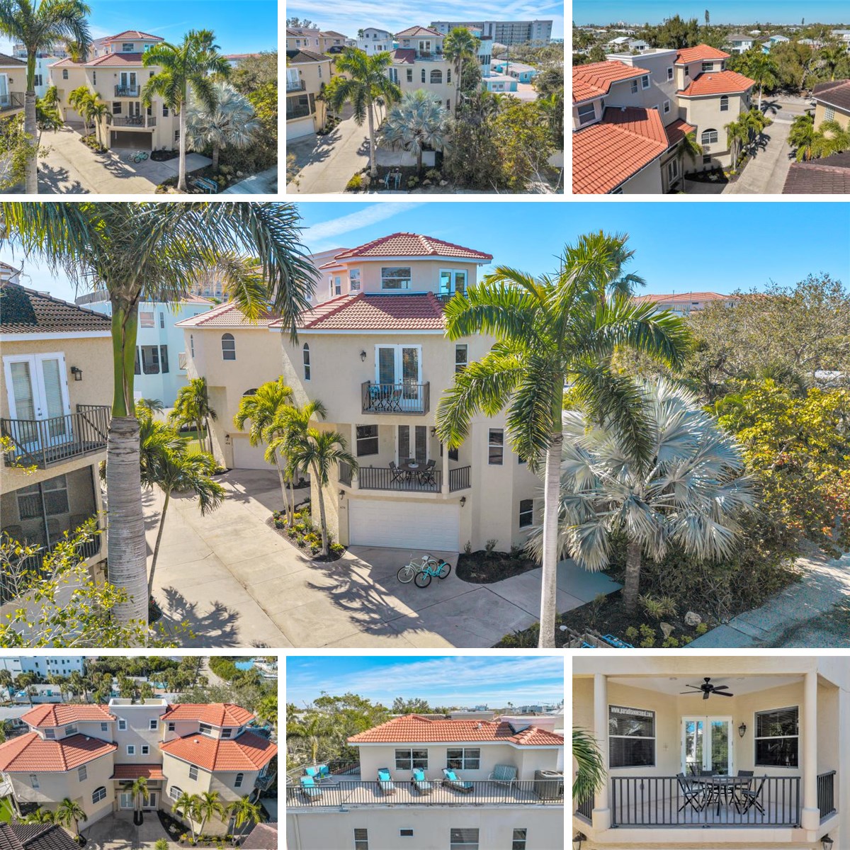 Superb Location. Big Family Retreat. Excellent Investment. Quiet Beach Days. The search for your ultimate beach retreat ends at 436 Canal Road. This 3-bedroom, 3 ½ bath home has all the extras you’re looking for. Your home is located just steps to world famous Siesta Key Beach. You are an easy walk, bike ride, or golf cart drive to Siesta Key Village where you will experience great food, entertainment and eclectic shopping. Enjoy fishing or dropping your kayak or paddleboard off your private community dock to explore Siesta Key by water. Or relax by the west-facing pool shared by only 4 units. At home, use your interior elevator to take you to all four floors. The oversized garage comes with a new garage door, a mini-split AC unit and plenty of room for your golf cart and beach toys. The first floor of living space has an open-plan kitchen with stainless steel appliances, a dining area and living room. There is also a balcony, laundry and half-bath on this floor. The next floor contains 3 spacious bedrooms and 2 baths. The Primary bedroom has an en-suite with dual sinks, both a garden tub and shower, and two walk-in closets. The top level had a surprise flex space that opens to the large roof top terrace with stunning views of the gulf. The flex space currently has 2 twin beds, a wet bar with under-counter sink, and a full bath with shower. Your home has a 2026 Roof, 2-AC units (2025 and 2026), and new Garage Door (2025). The property is currently being utilized as a WEEKLY rental and sleeps 8. The community is pet-friendly (owners only). Come visit paradise on Siesta Key.
