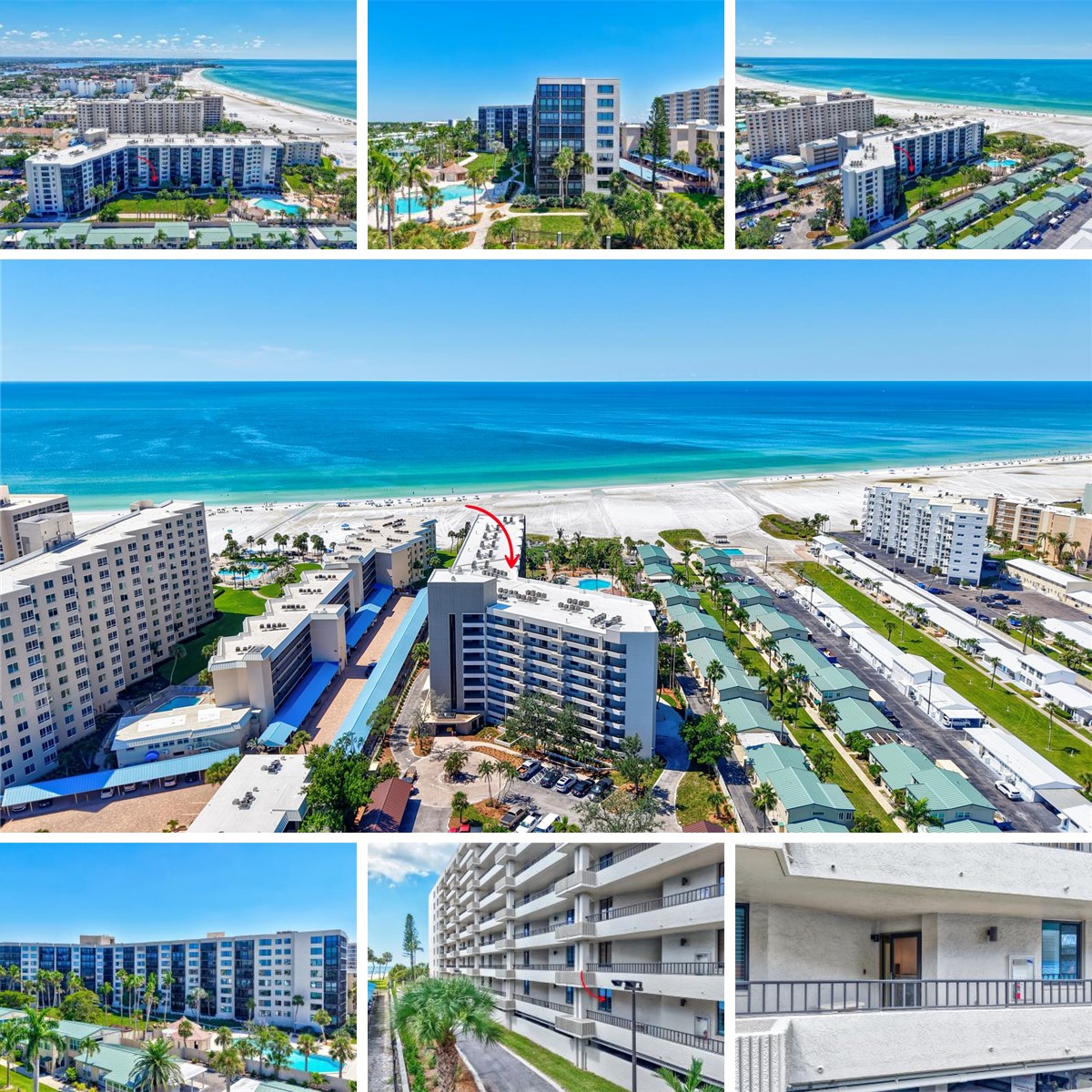 Find your beach get-away in this remodeled three-bedroom Casarina condo located on Siesta Key’s famous Crescent Beach. This stunning TURNKEY FURNISHED and updated unit includes an open concept kitchen with high-end custom soft-close cabinetry, designer hardware and granite countertops. The great room was extended to incorporate the balcony into the living space creating an open and airy feeling to this home. A wall mounted television with Sonos audio provides family entertainment. The spacious primary bedroom with a Closet Tech designed walk-in closet opens to a large bathroom with custom cabinets, dual sinks and large walk-in shower. A third bedroom was created during the recent remodel and includes a built-in under window desk. The full-sized laundry room allows for plenty of storage. Luxury vinyl flooring was installed in 2020 in all public rooms. Impact windows were added in 2016. Electric blinds can close off the sliding glass doors to the outside view while all other windows have custom designed plantation shutters. Crown molding and solid wood doors are found throughout the unit. Casarina is an 89-unit condominium complex that sits on 200 feet of private beach and encompasses 7 acres of tropical landscaping. The complex has a clubhouse with kitchen. Spend your days enjoying the beachside pool and spa, play a game of pickleball on one of the two lighted tennis courts, or relax on the island’s famous crystal sand beach. Hop on the free trolley to enjoy the dining, shopping and entertainment at Siesta Key Village. CASARINA ALLOWS OWNERS ONE SMALL PET.
